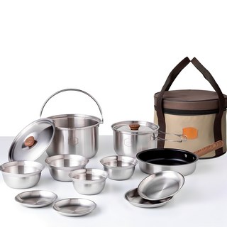 주방부터 캠핑까지! 스텐 3중 바닥 설계 냄비 프라이팬 인덕션겸용 캠핑 코펠 12종 풀세트 2~4인용, 1개